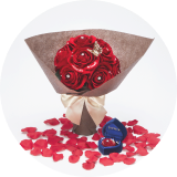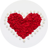 キャンドル型LEDライト30個と赤いバラの花びら(造花)約400枚のセット。