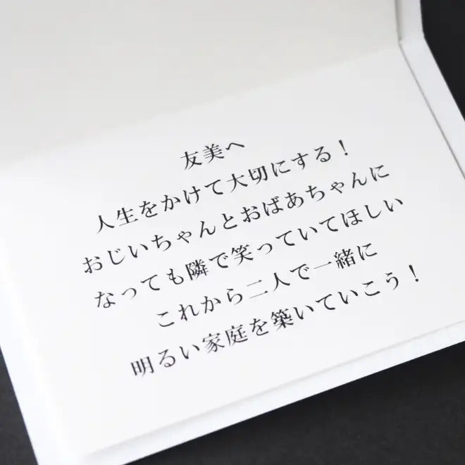 ここでは、メッセージカードの文章例・印字例をご紹介します。愛する方への大切なメッセージ、是非ご参考にして頂き、心のこもったカードにして下さいね!