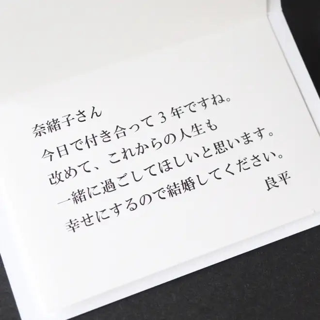 「結婚してください」とカードに入れる場合は、カードを読んでもらった後に改めてあなたの口から伝えてあげると、一層喜んでもらえるでしょう。