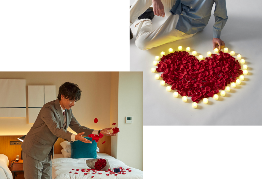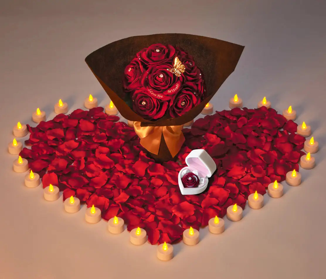 お家やホテルのお部屋でのプロポーズ演出に使えるバラの花びら付き。