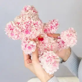 ピンクの桜で出来た愛らしいテディベア。春の代表花「桜」を108輪使う意味は108(トワ)=「永遠」。この愛が永遠に続くように…という願いが込められています。優しい色合いのテディベアはホワイトデープロポーズにぴったり。