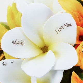 花束をセットして飾ることが出来るメモリアルプレートです。お二人の名前やプロポーズの日、記念日などの特別な日をレーザー刻印できます。