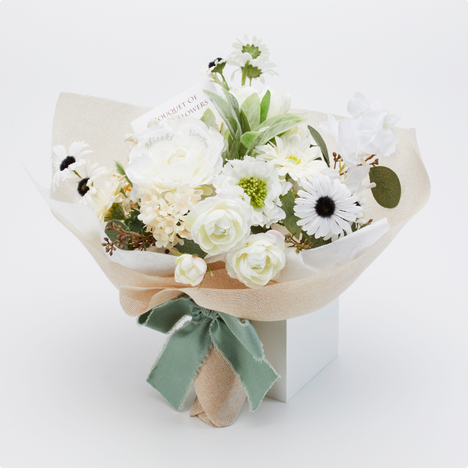 大切な人にプロポーズする時、12本の花束に愛の誓いを込めて渡す西洋の風習「ダズンフラワー」。このロマンティックな風習を叶える花束ギフトです。12本の花は「純粋・新たな出発」を象徴する白色を基調に選び、プロポーズにふさわしいまっすぐな想いと二人の輝く未来をイメージしています。